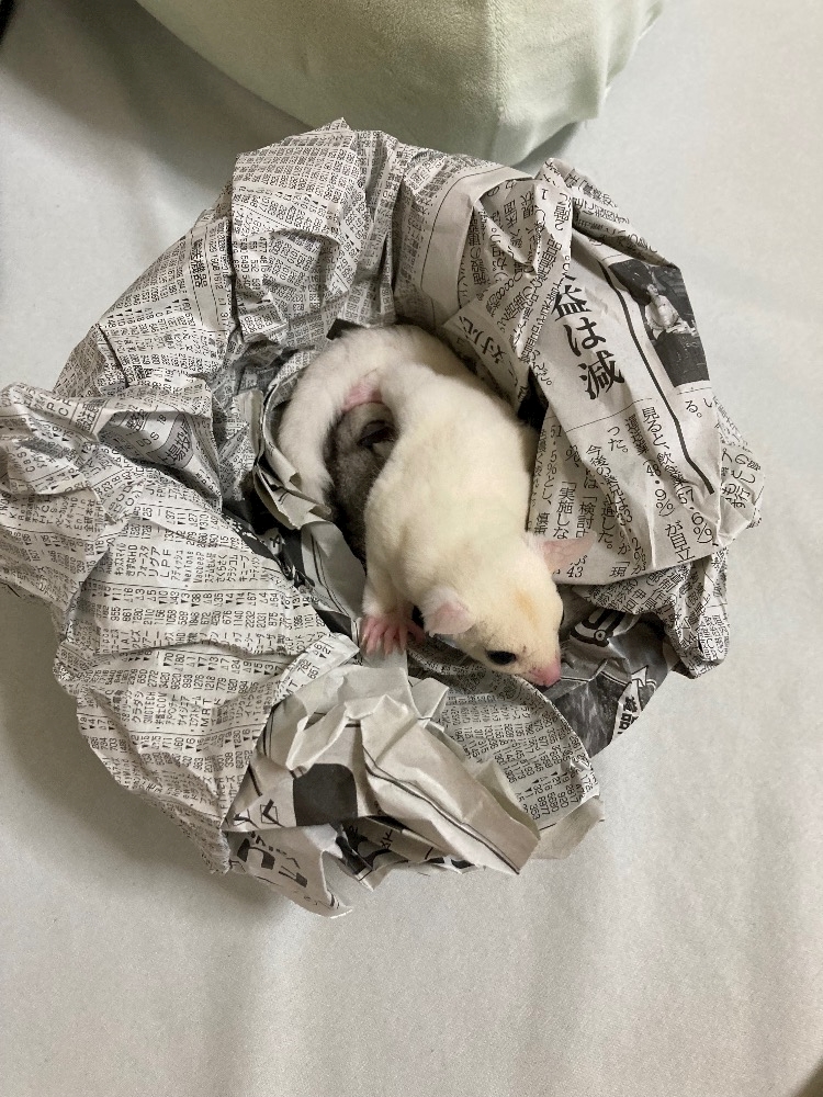 新聞紙で寝床作ったら入ってくれました💕
