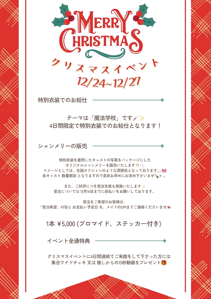 各キャスト、クリスマス限定シャンメリーが販売されますっ!🥂 パフパフ~🎉