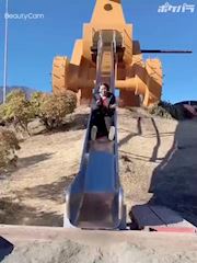 大きい滑り台を滑ったら