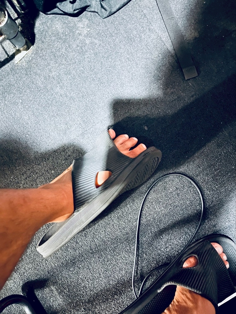 文で説明するのが難しいのですが、サンダルが壊れて足が突き抜けるというか、とりあえず運動不足な人だったら足を捻挫するところでした。