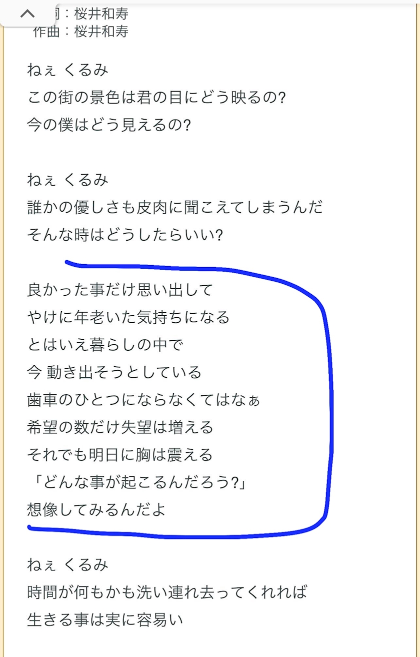 今日は、Mr.Childrenのくるみ
