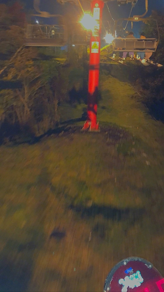 4人でリフトに乗ってる