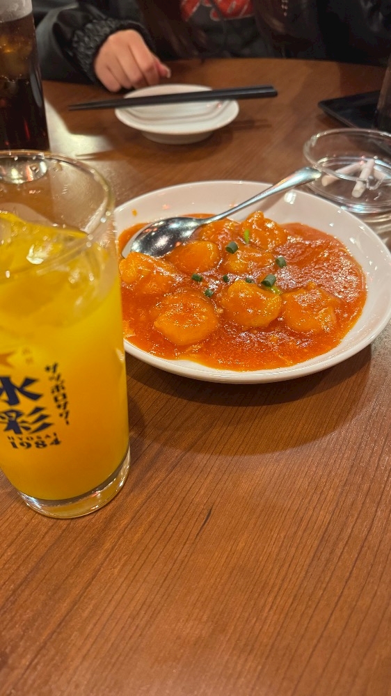 シャンシャンのマンゴージュースとエビチリ🍤🎀