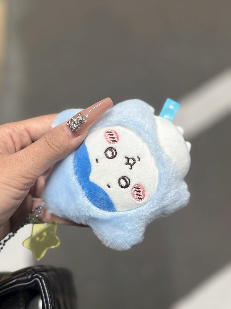 ポップアップで購入したハチワレをバッグに付けてみた🩵