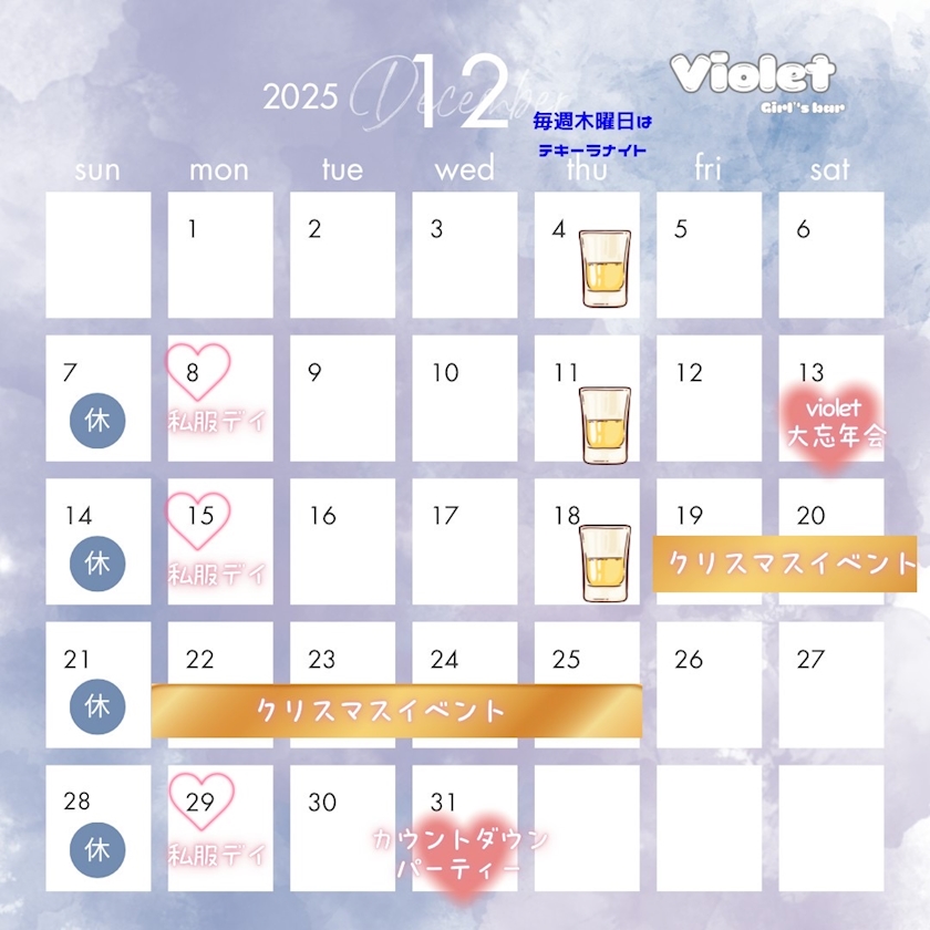 12月イベントカレンダー作りました✌️ - ななみ - violet・ヴァイオレット - 静岡市 両替町のガールズバー