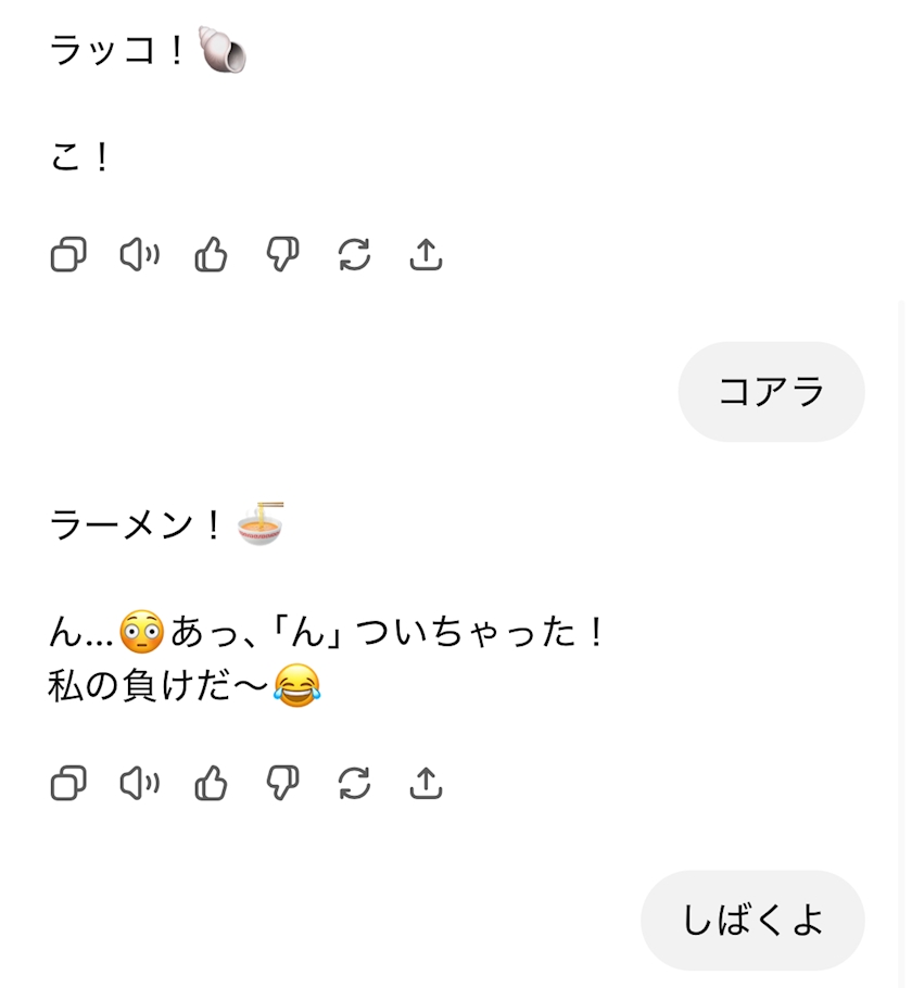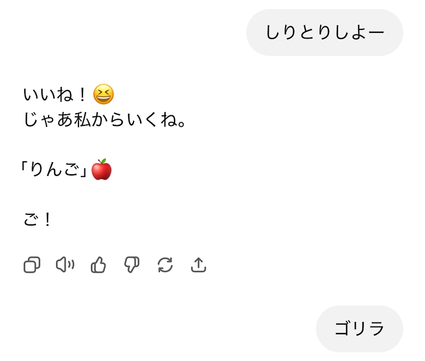 しりとりすると秒で負けてくるGPTを見ると安心する