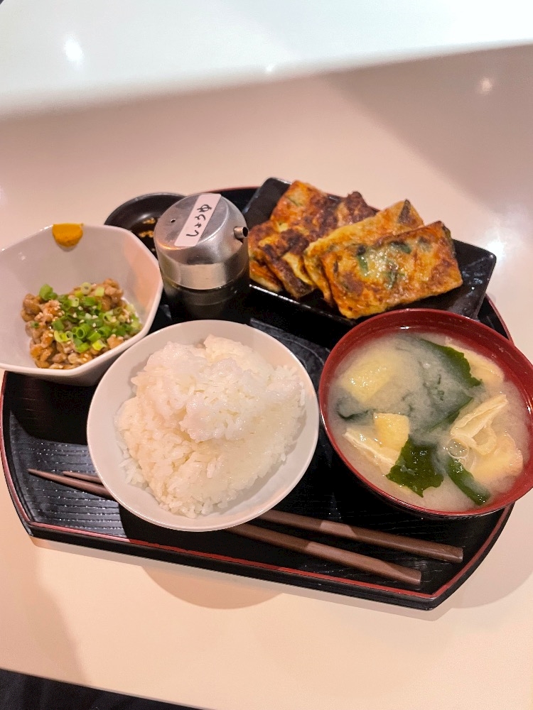 納豆にご飯に味噌汁にチヂミ❣️