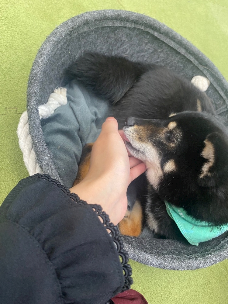 この黒柴ちゃんもおててペロペロしてくれた🐾