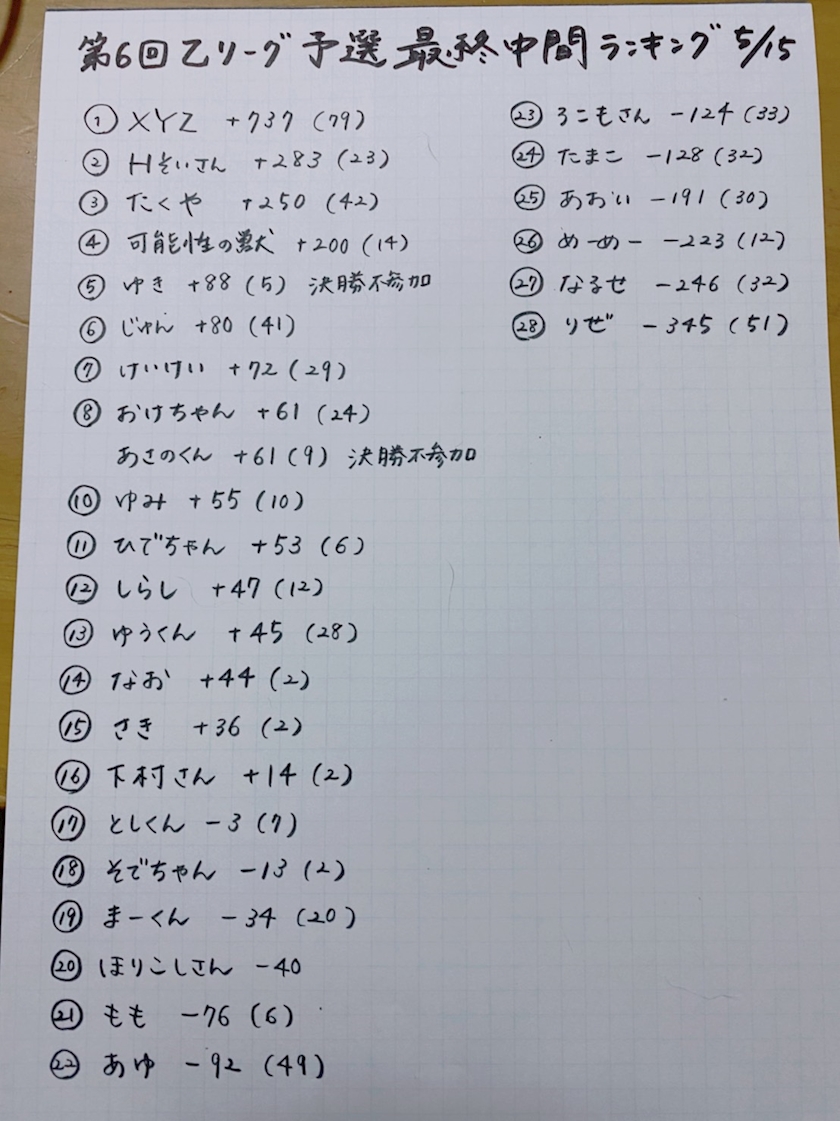 ということで、第6回乙リーグ予選も明日が最終日!