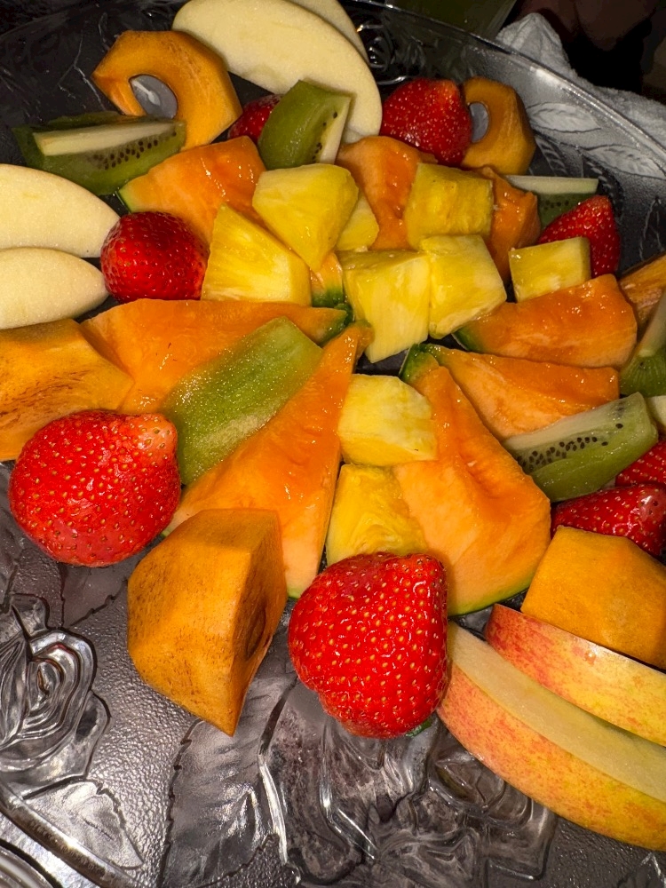 一緒にフルーツ盛り食べて