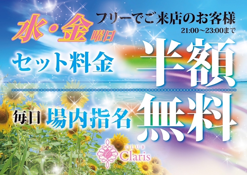 今月は毎日、場内指名無料!!