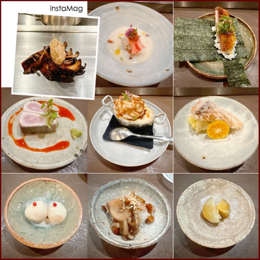 鯵の手巻き。さわらと燻製卵黄のソース。