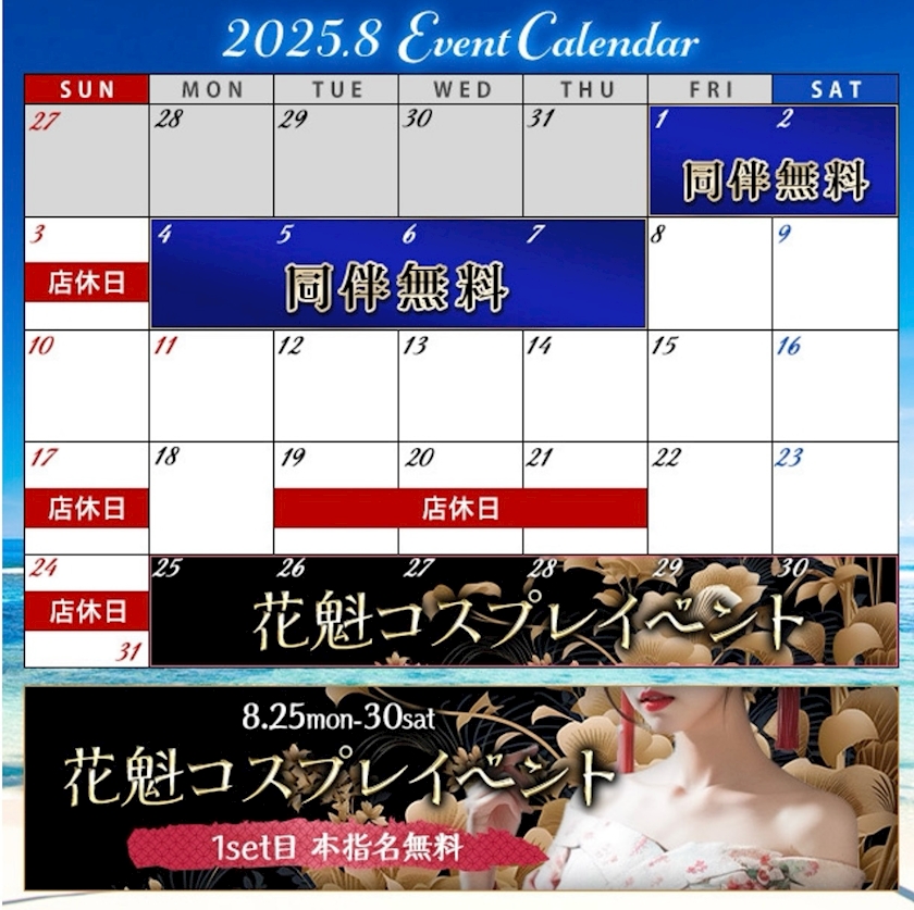 8月カレンダーです! - ❤️🧡💛💚💙💜與座妃菜💜💙💚💛🧡❤️ - 錦 ガールズバー・アズ