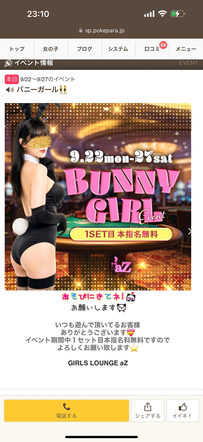 今週バニー! - ❤️🧡💛💚💙💜與座妃菜💜💙💚💛🧡❤️ - 錦 ガールズバー・アズ