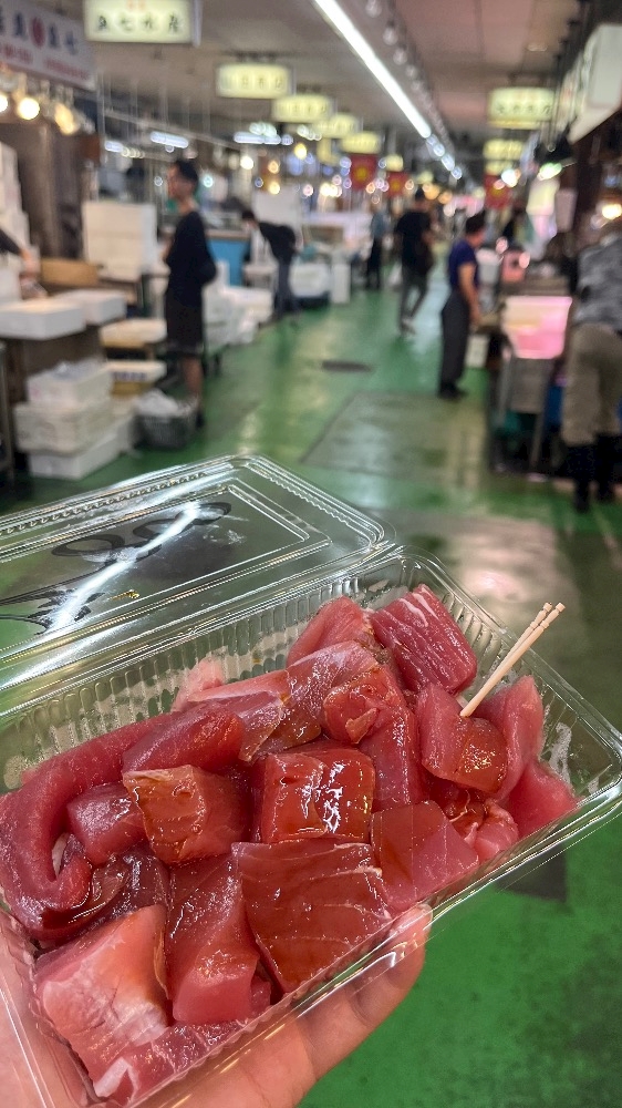 マグロを朝一に食べれて