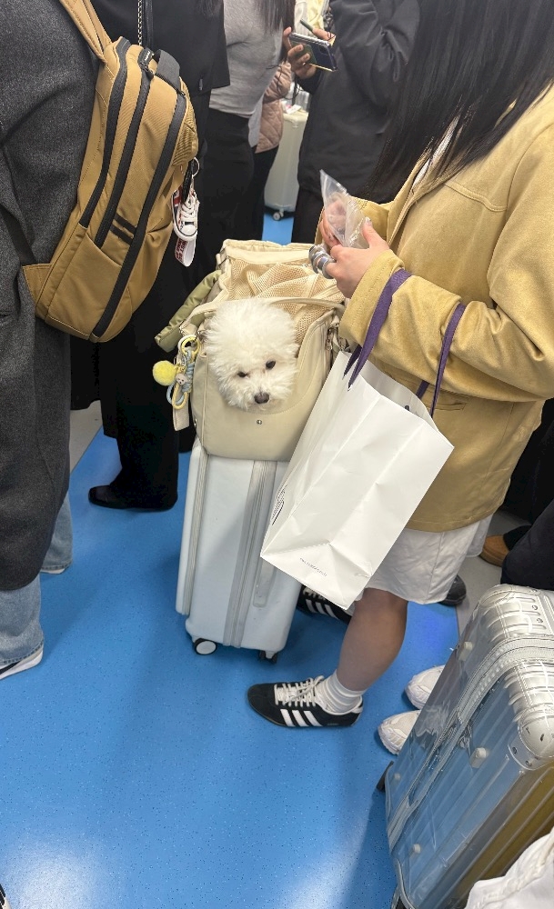 地下鉄乗ったらわんちゃんがお顔出したまま乗ってて笑
