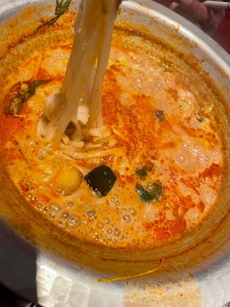 シメに米粉の麺を投入