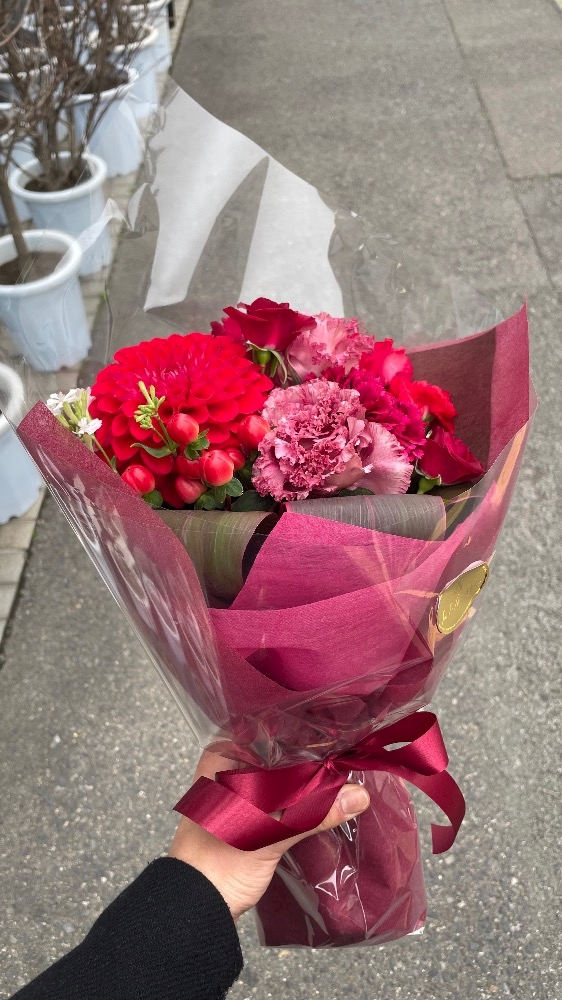 プレゼントの赤いブーケを