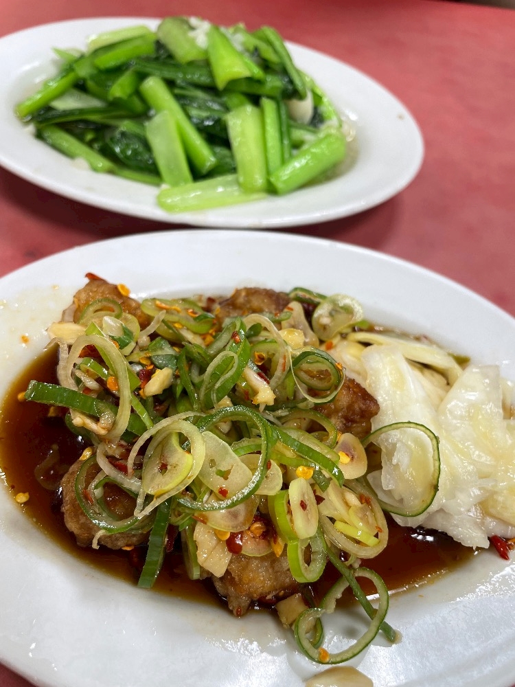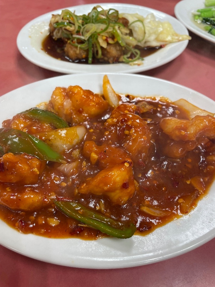 青菜炒めと酢豚