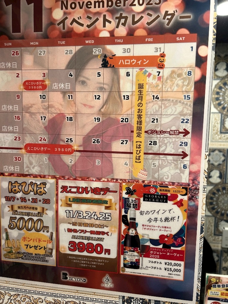 ボジョレー入れるらしいよ(ワシは古めのワインのが好きだけどもね。。。)あとさ、名前が、は?って感じだけどえこひいきDAY。。。えこはECOってこと? - Karin✴︎🌙ALRAI - ALRAI・エルライ - 名古屋 錦の熟女パブ/熟女キャバクラ