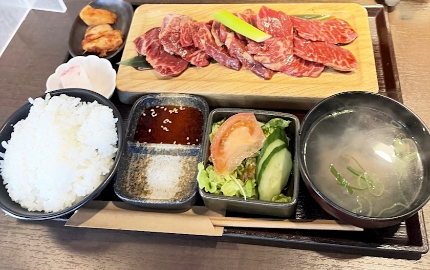 ライス、ワカメスープ、サラダ、キムチ付きで