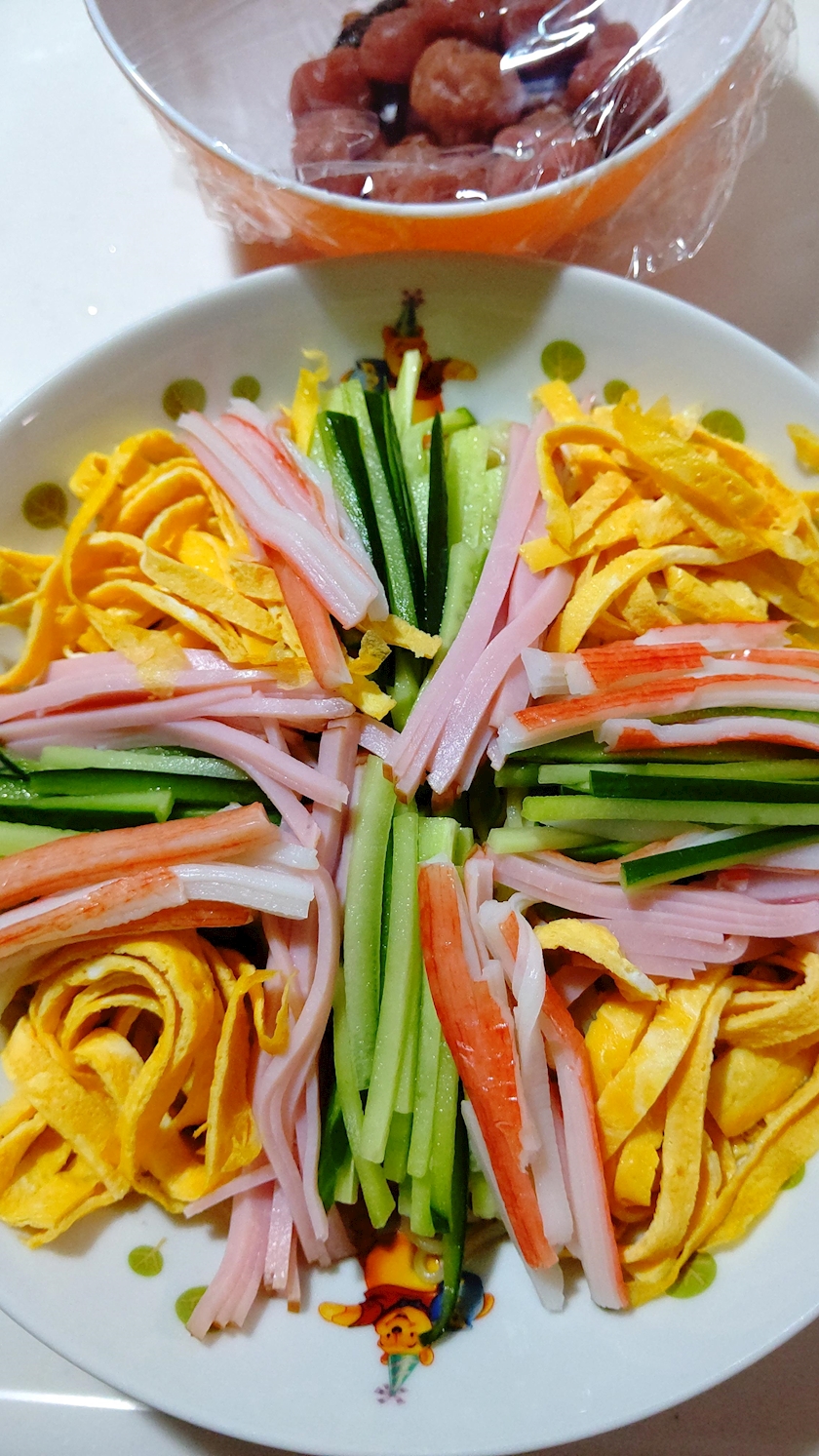 - *予告通り冷やし中華🥢〰️🦸☝️💕・写真👀📷️✨→㊧なな😼💝㊨のんのん😽💝*
