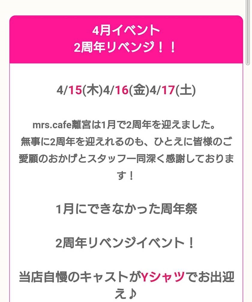 - *ミセスカフェ離宮🥂周年イベント2日目*°♡*