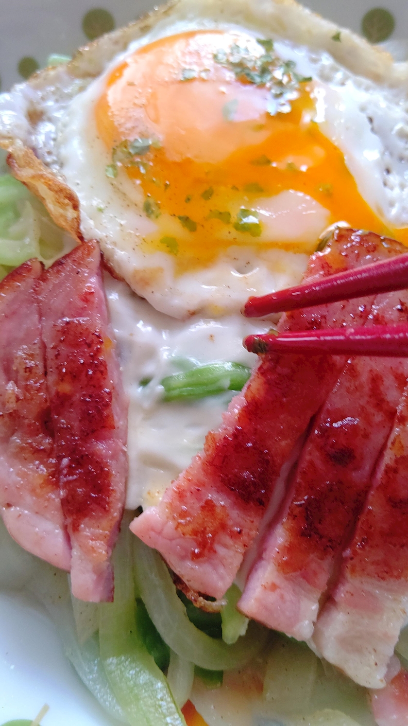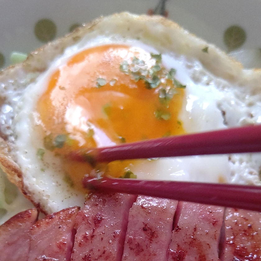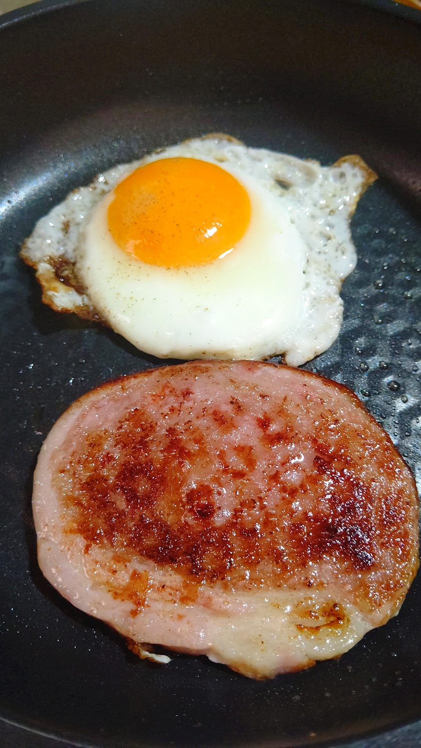 ハムステーキ🥩返す時に→油はねました ⁝( `ᾥ´ )⁝💧