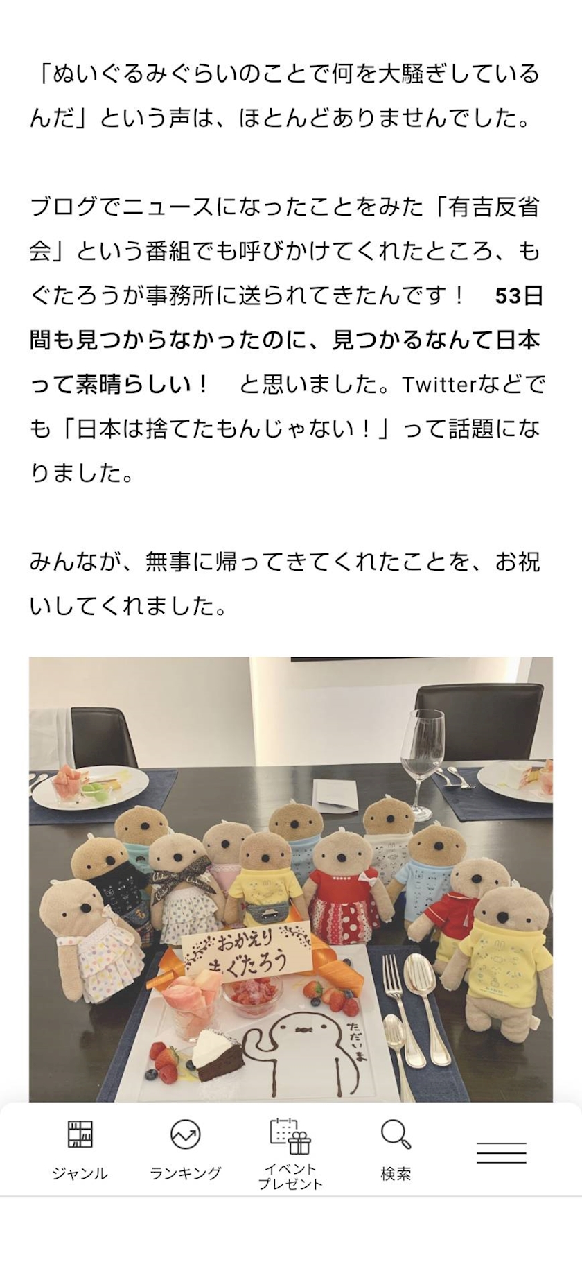 帰って来た事を