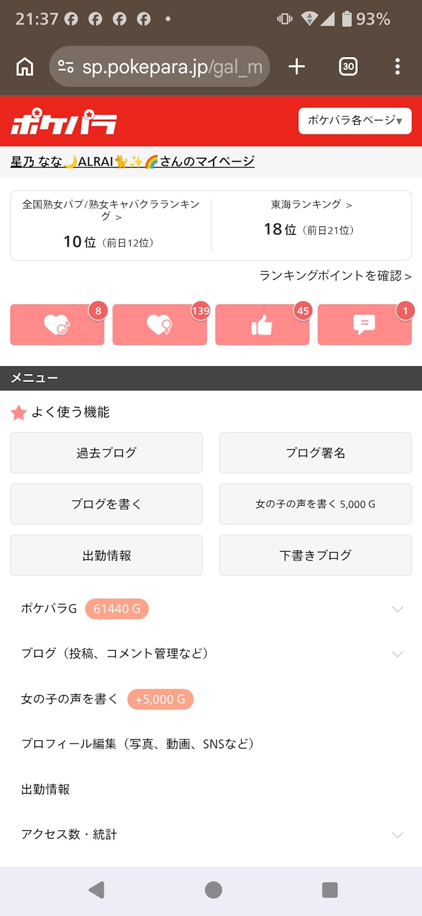 名前:星乃 なな🌙ALRAI🐈✨🌈(ホシノ ナナ) [77才]