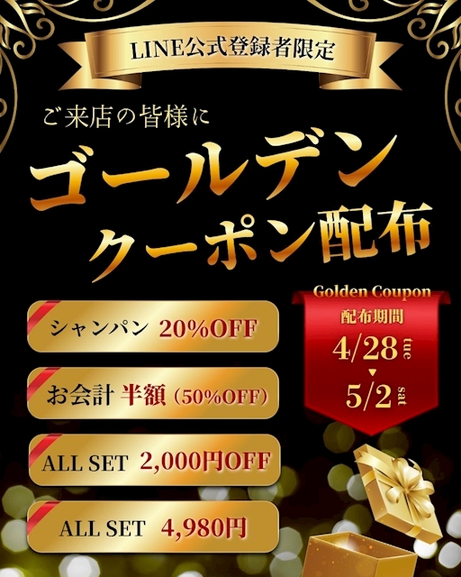 超お得な“ゴールデンクーポン”を配布します♡