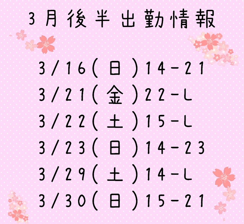 3月後半出勤情報
