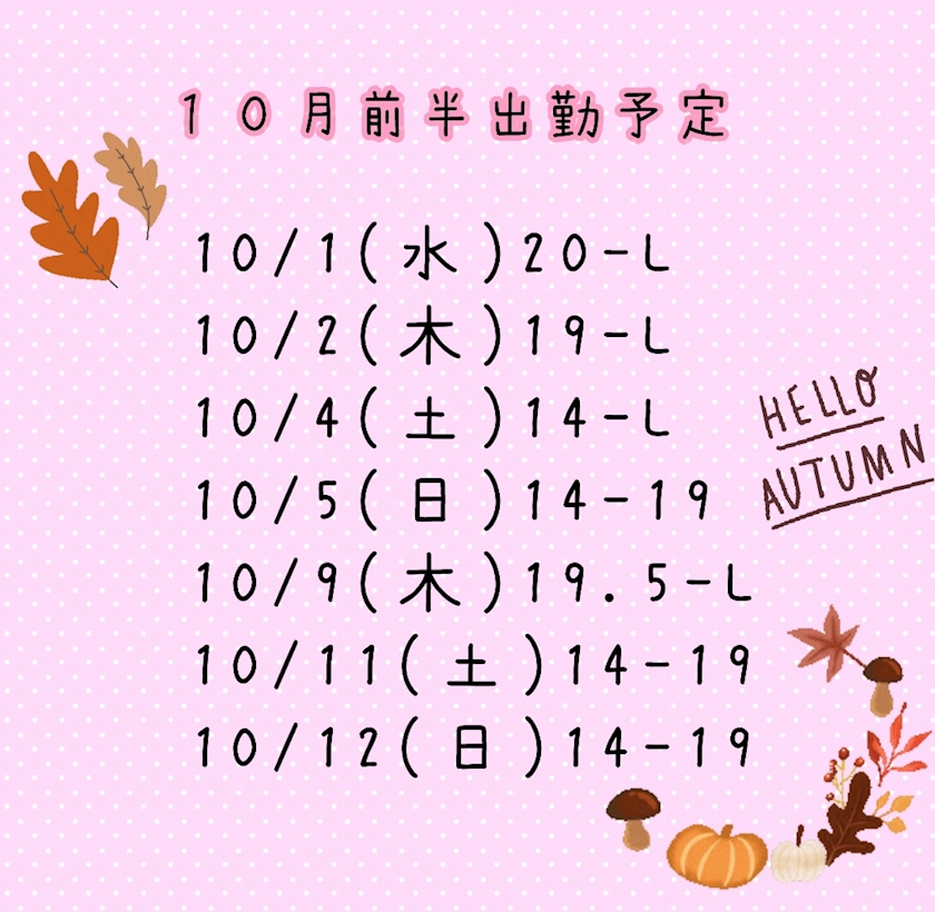 10月の出勤予定🗓️