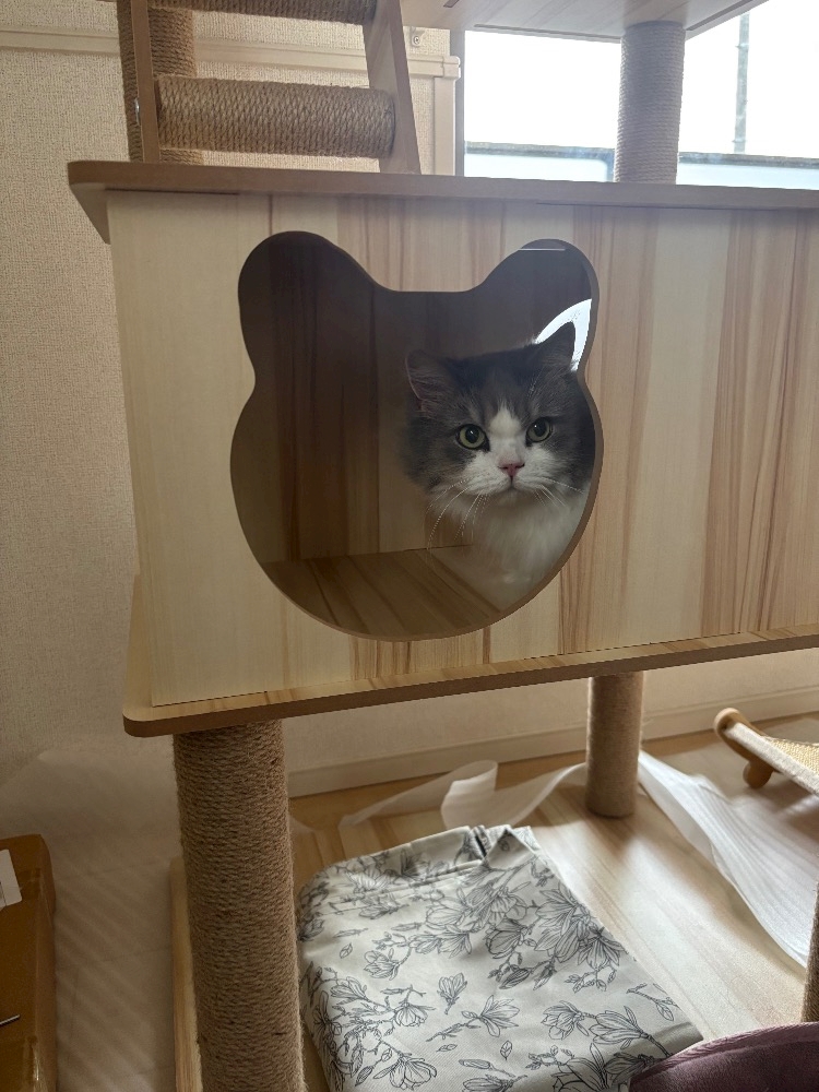 新しいキャットタワーを買ったんだけど