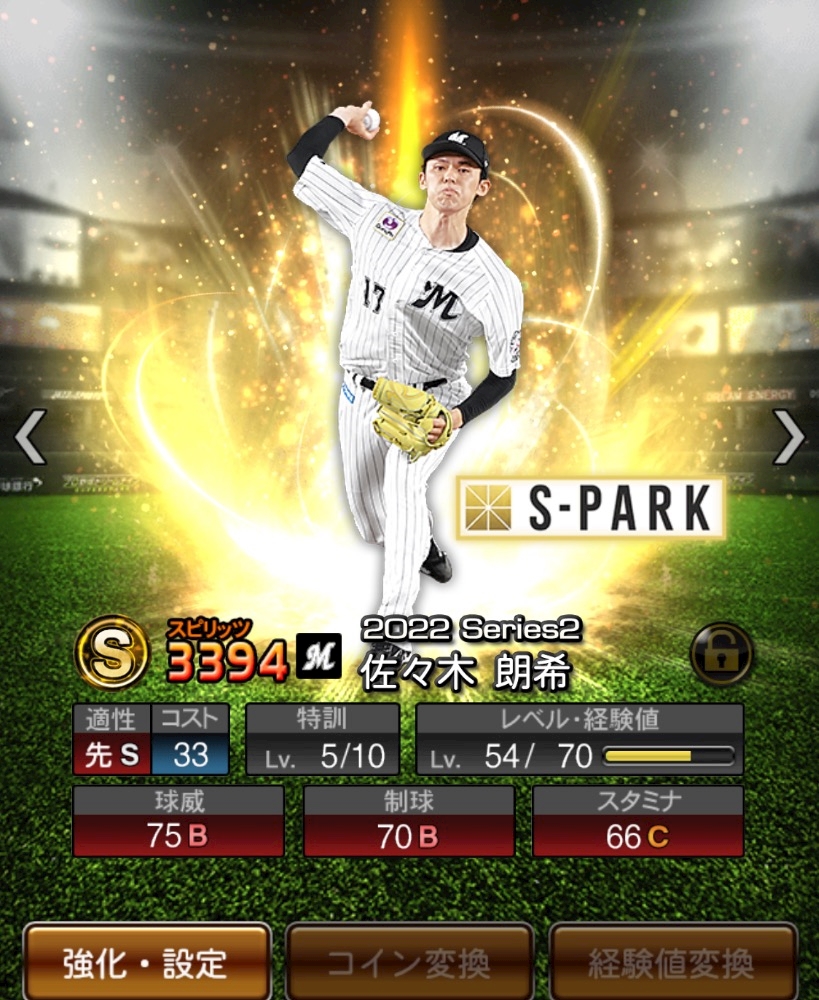 プロスピでお世話になっている佐々木朗希選手(育ってないのは私の努力不足💦)