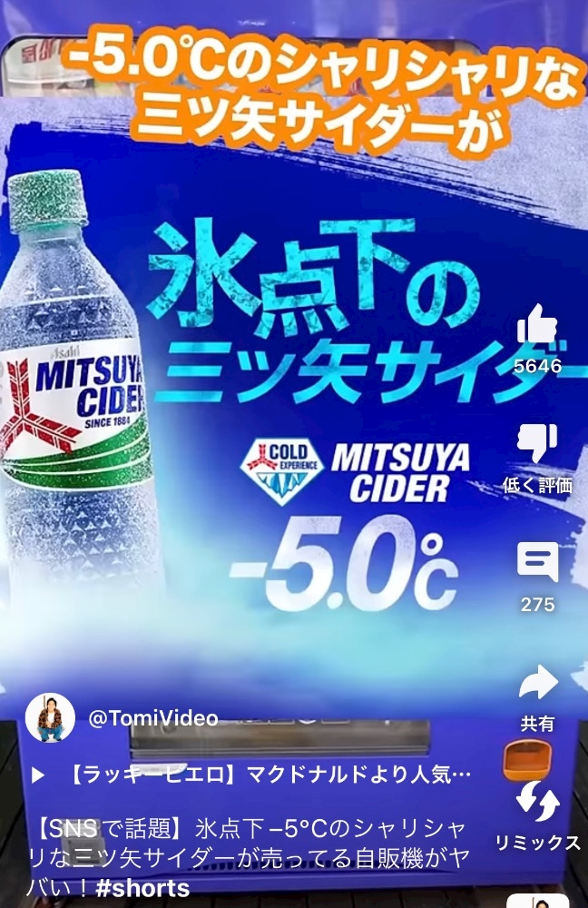 YouTubeショートで見かけたマイナス5度のサイダー❕