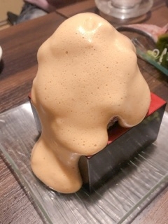 泡状の醤油をマグロにかける