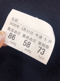 血圧検査の紙の写メ出てきて