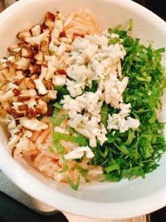 鳥ミンチと混ぜてコネコネ
