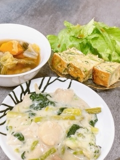ホタテとほうれん草のクリーム煮