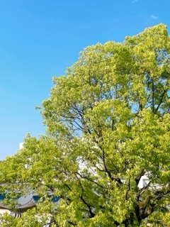 太陽浴びた木々の葉っぱが