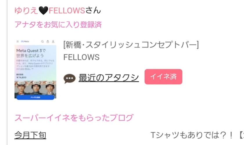 キャストさんのブログで