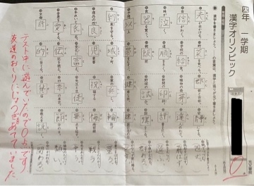 この漢字テストをお家の人に