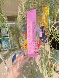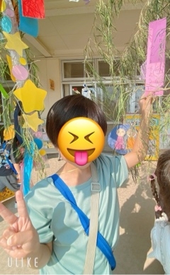 保育園の七夕の前で