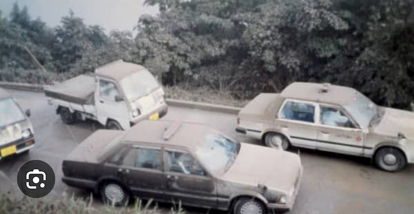 お家の車も灰まみれになって
