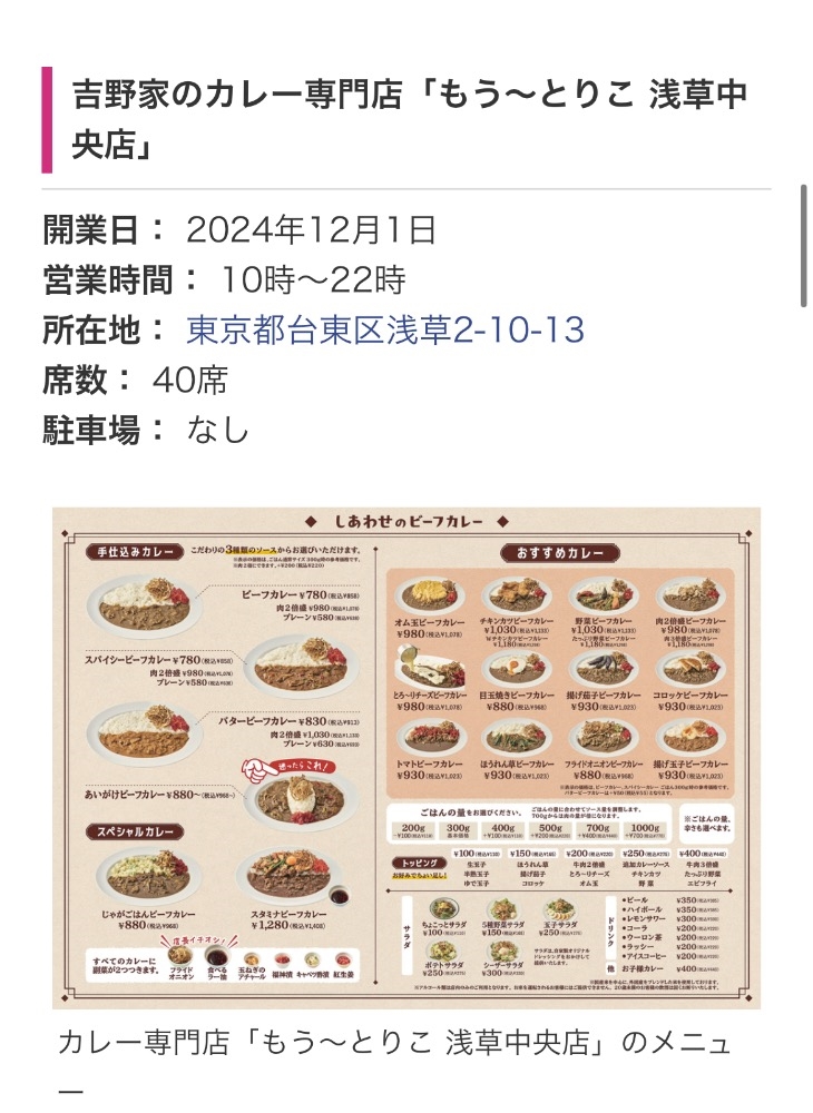 東京に吉野家のカレー専門店