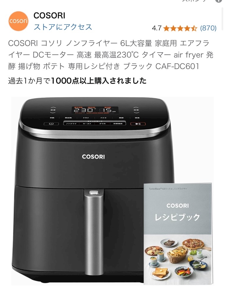 ノンフライヤー欲しいなぁ。。