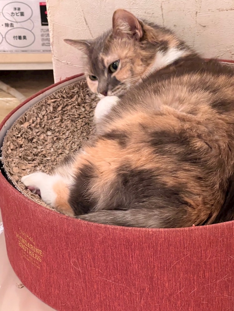 この前友だちから写真送ってもらった猫カフェのやつ。