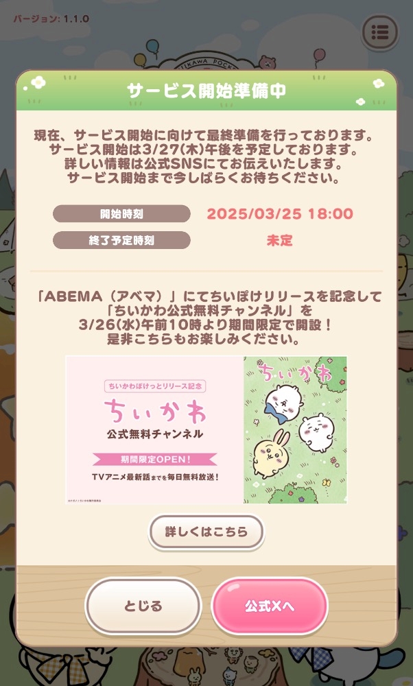 ちいかわぽけっとがどうなるのかそわそわしてますが、最初はサーバーダウンとかしそうな気がしてる。