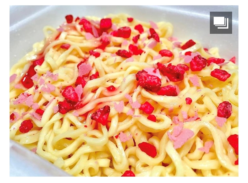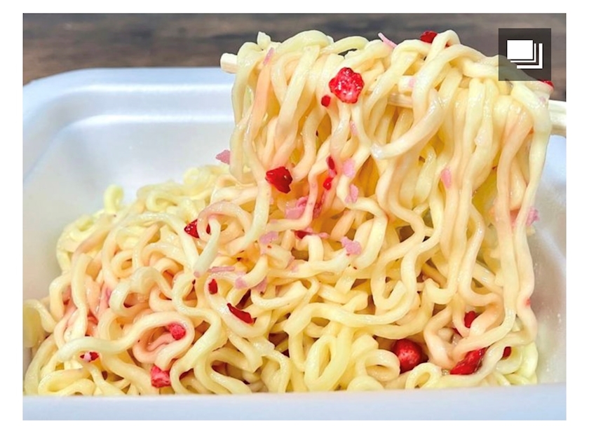 とろりと濃厚ないちごソースは、麺と絡まり濃厚な甘さを演出!